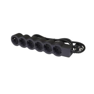 Продолжен блок 16А, 230V, 3680Wmax, со шест шуко монофазни приклучници, со кабел 5m 3×1, 5mm2, боја црна/ темно сива