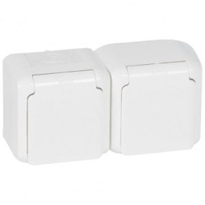 Двојна приклучница RJ-45 cat 5e utp за назидна монтажа, Ip-21, бела боја